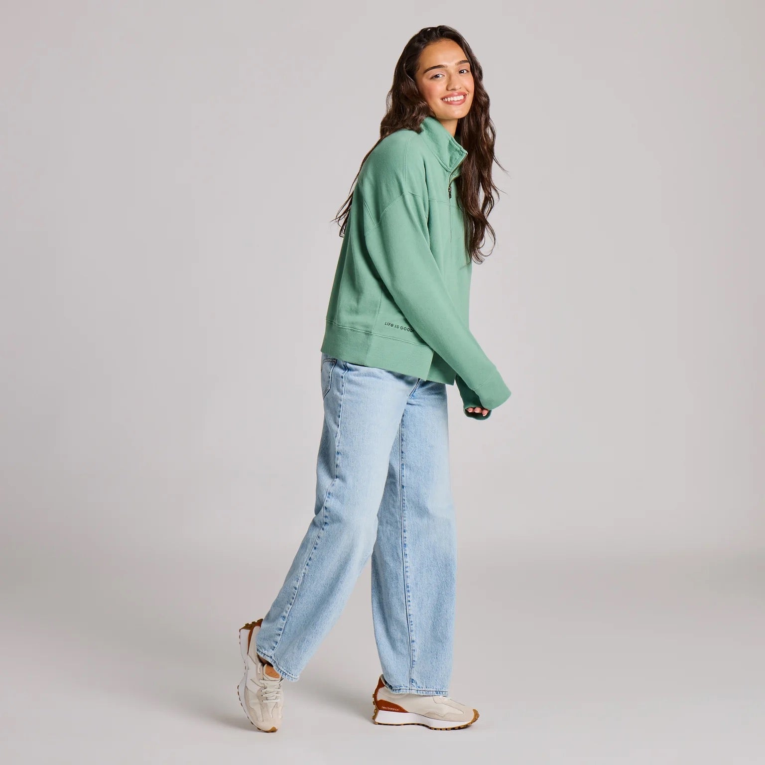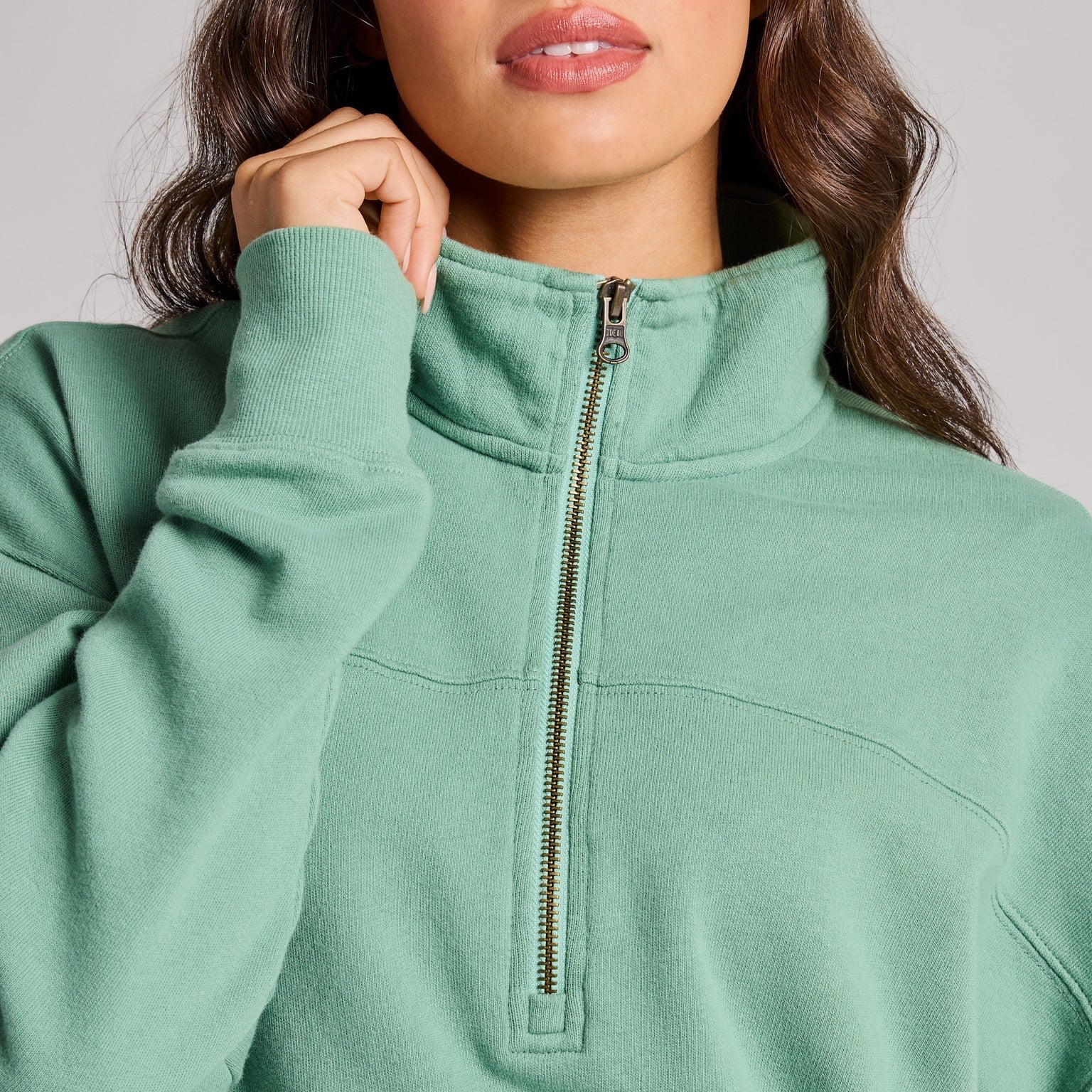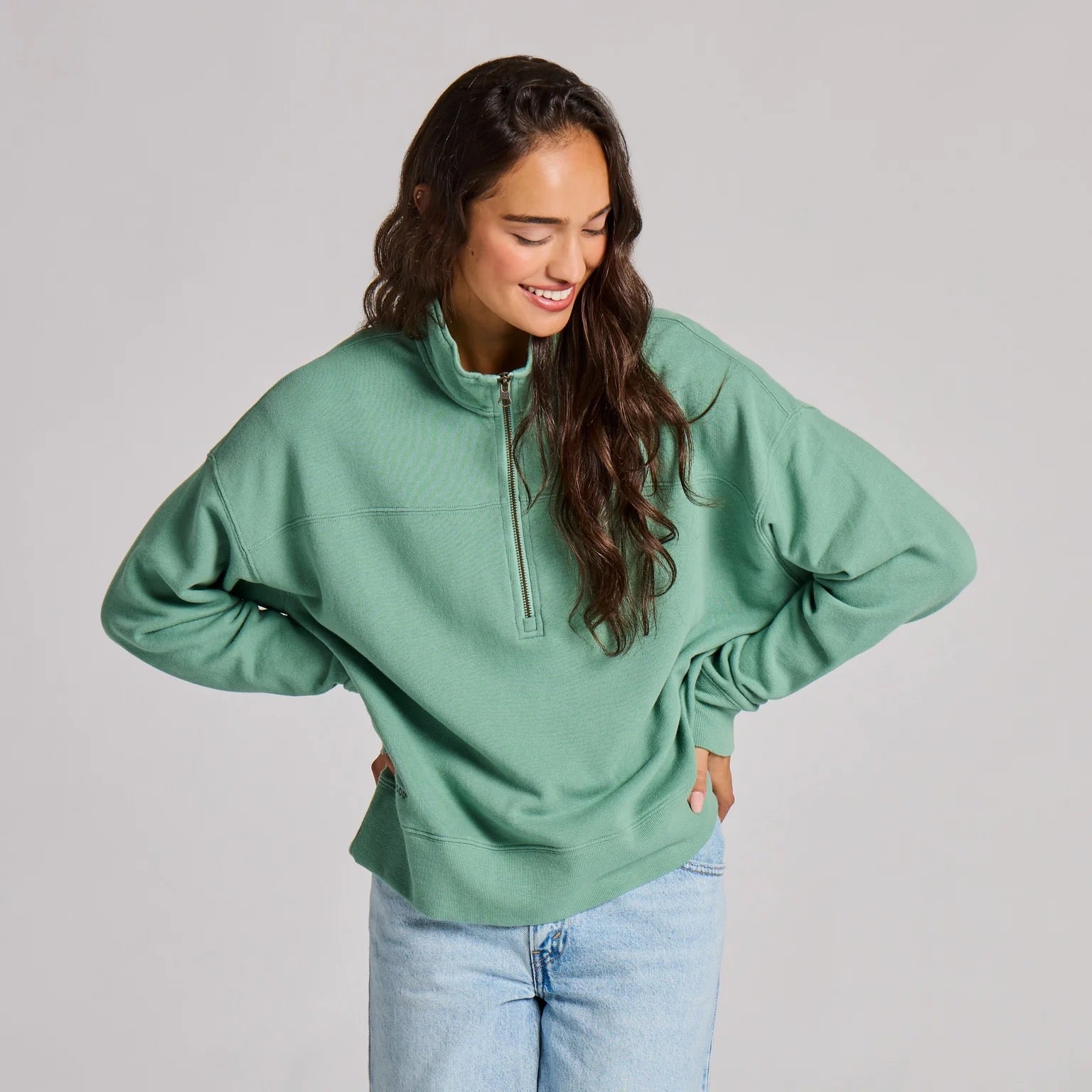 Women's Solid French Terry Boxy Quarter Zip