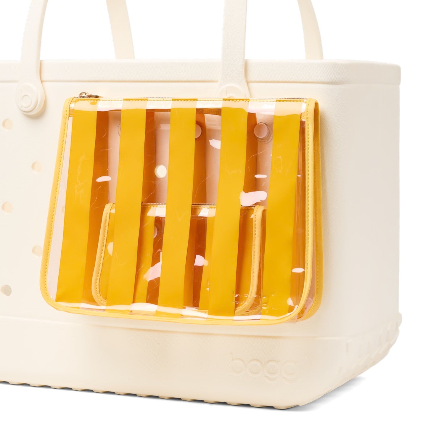 Keep your essentials sorted with this set of small and large zippered pouches. Clear, leak-resistant, and easy to clean, they snap right into the holes of your Bogg Bag to keep valuables secure and within reach—no more digging.