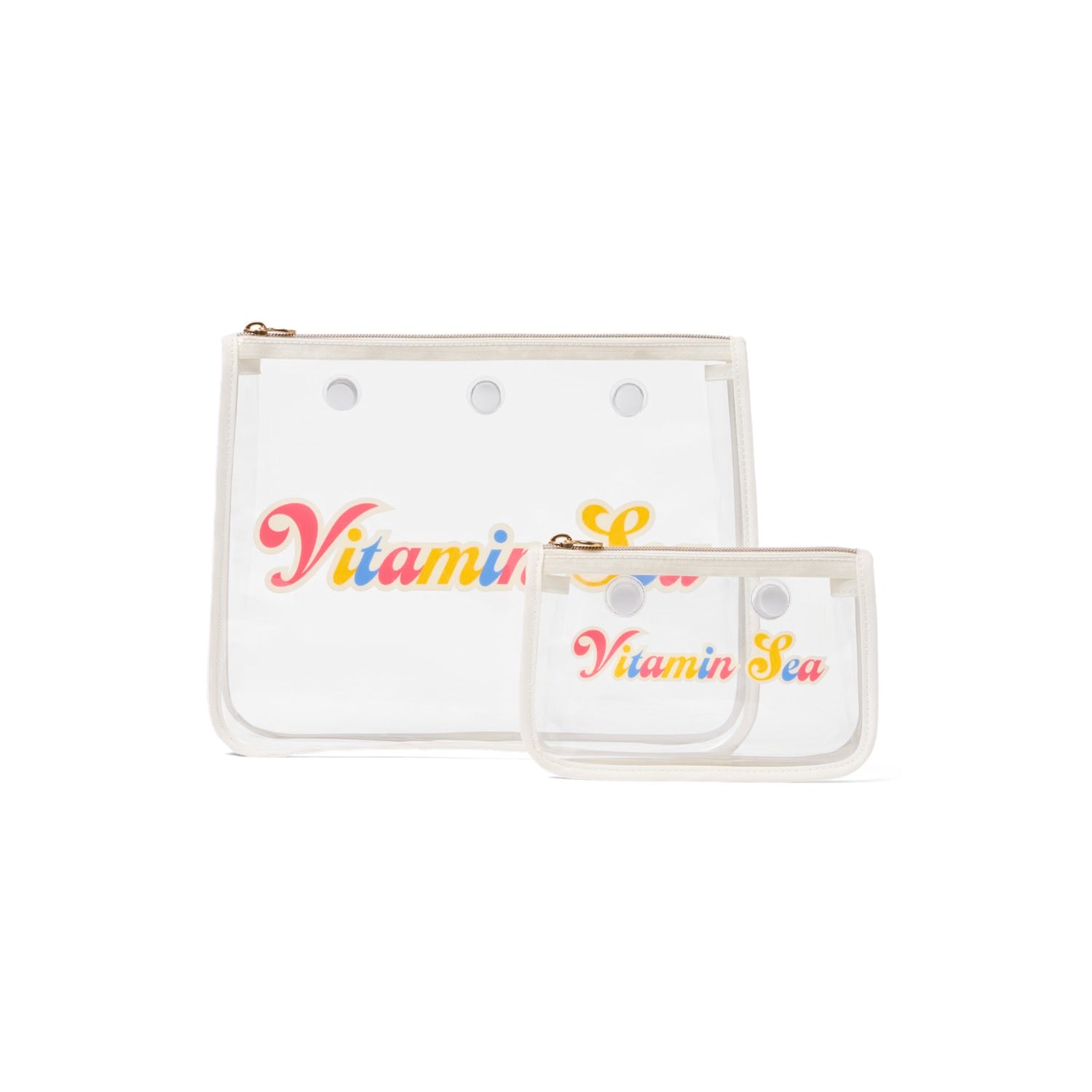 Keep your essentials sorted with this set of small and large zippered pouches. Clear, leak-resistant, and easy to clean, they snap right into the holes of your Bogg Bag to keep valuables secure and within reach—no more digging.