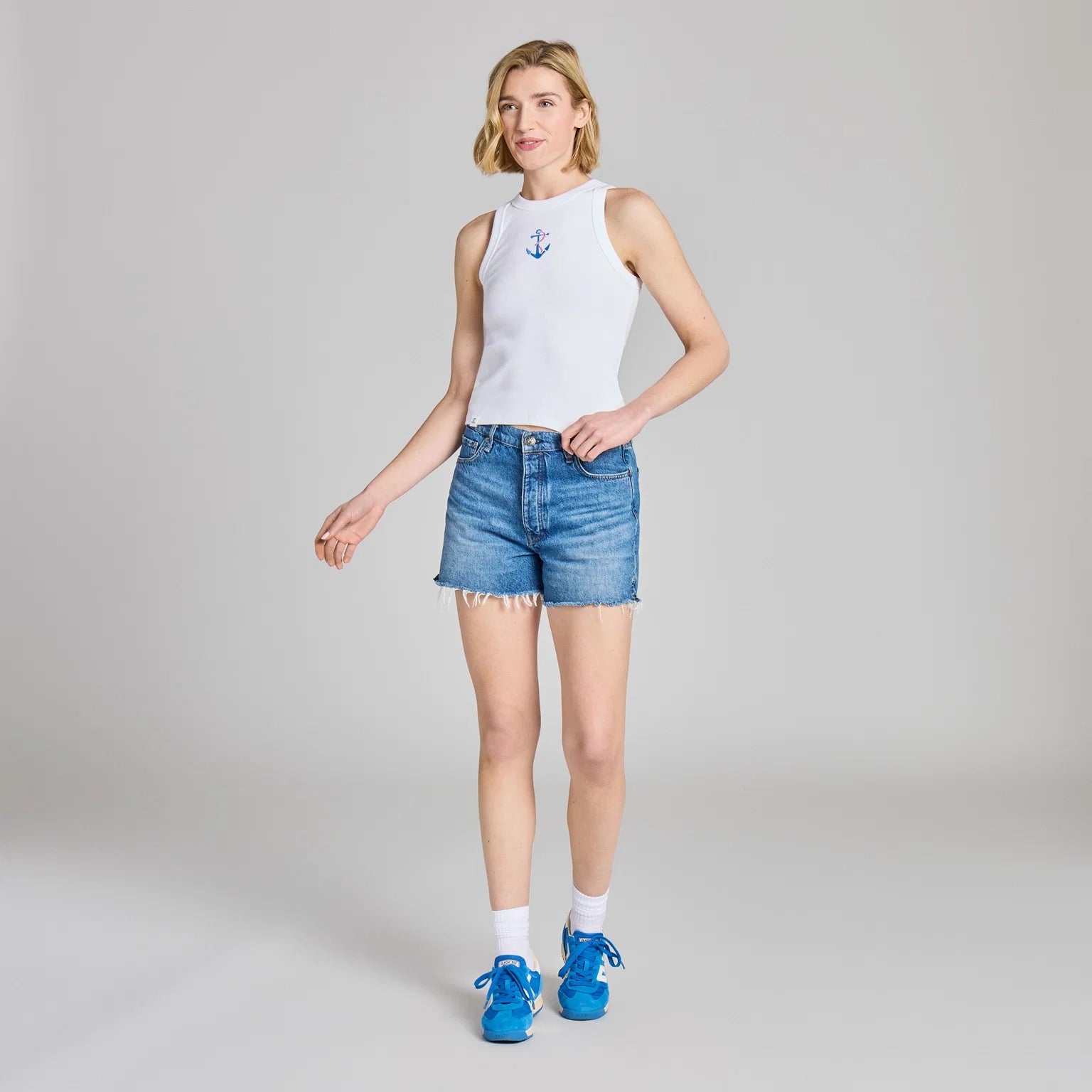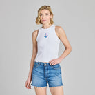 Women's Embroidered Anchors Away Fitted Rib Tank